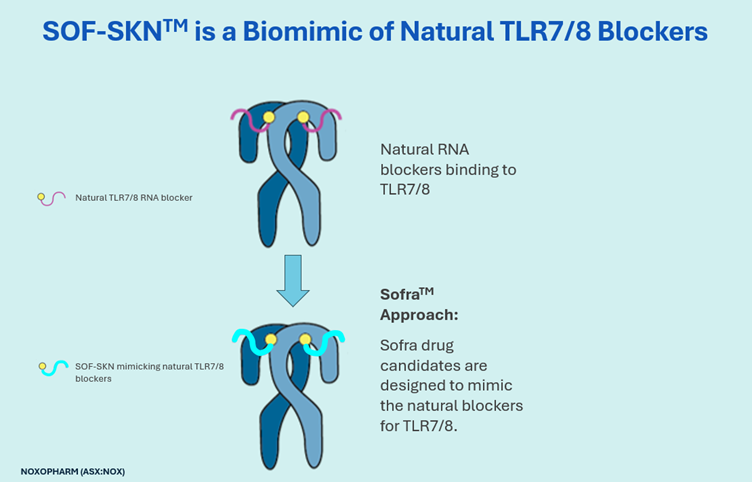 SOF-SKN mimics the natural RNA blockers of TLR7/8.